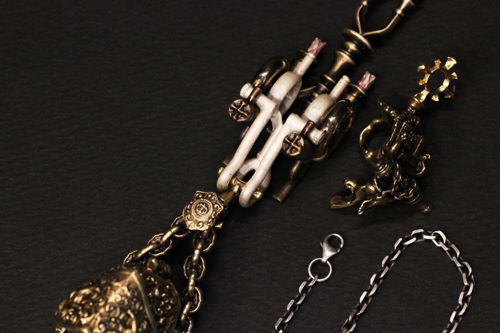 Among them, this particular piece is designed as a holder mounted on the Order’s walls or altars, emphasizing extreme detail, material contrasts, and balance. Additionally, it has been crafted with future expandability in mind, allowing for integration into upcoming relic-adorned altars.