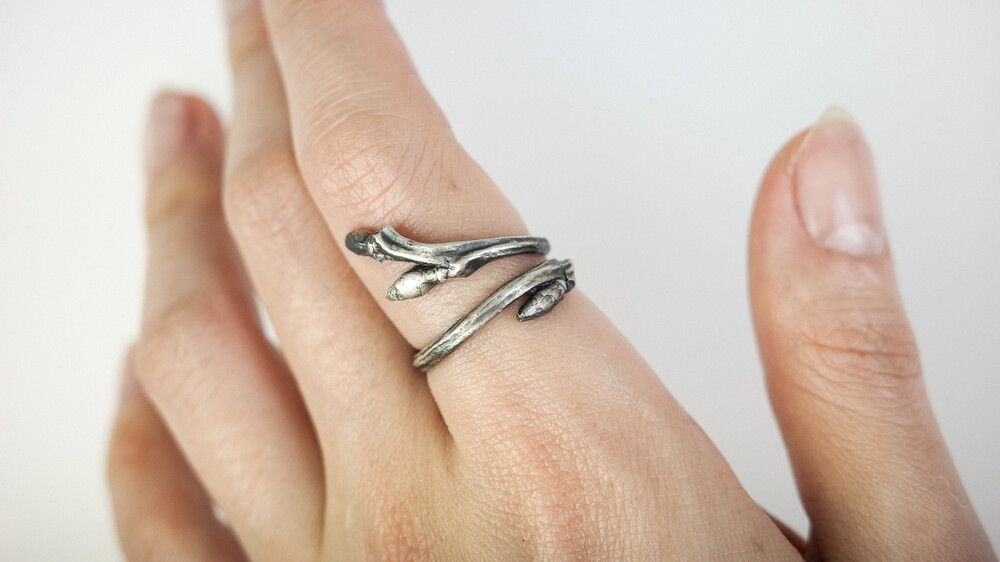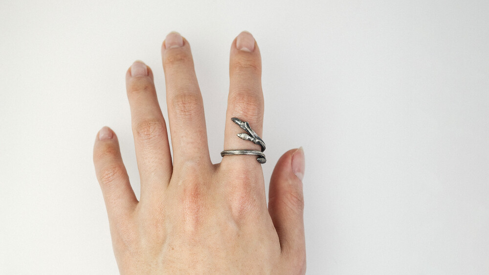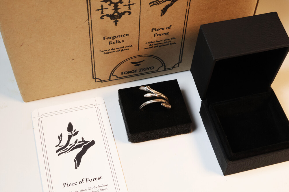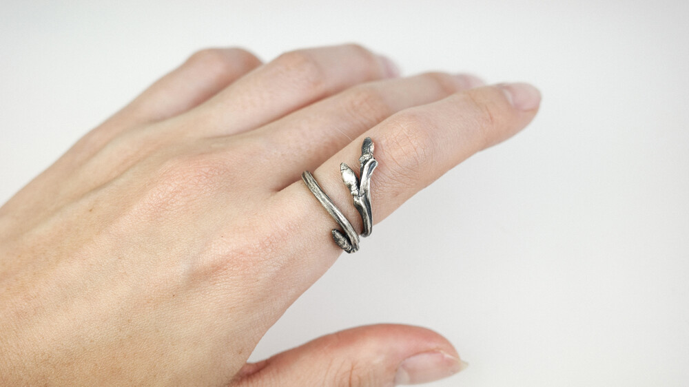 A piece of the forest, is a ring modeled after the buds which did not sprout and withered away. Actual branches and buds are utilized to design the ring and melted silver is used to create a ring. Although the buds couldn't become the part of the forest, I believe it will live on within our hands.